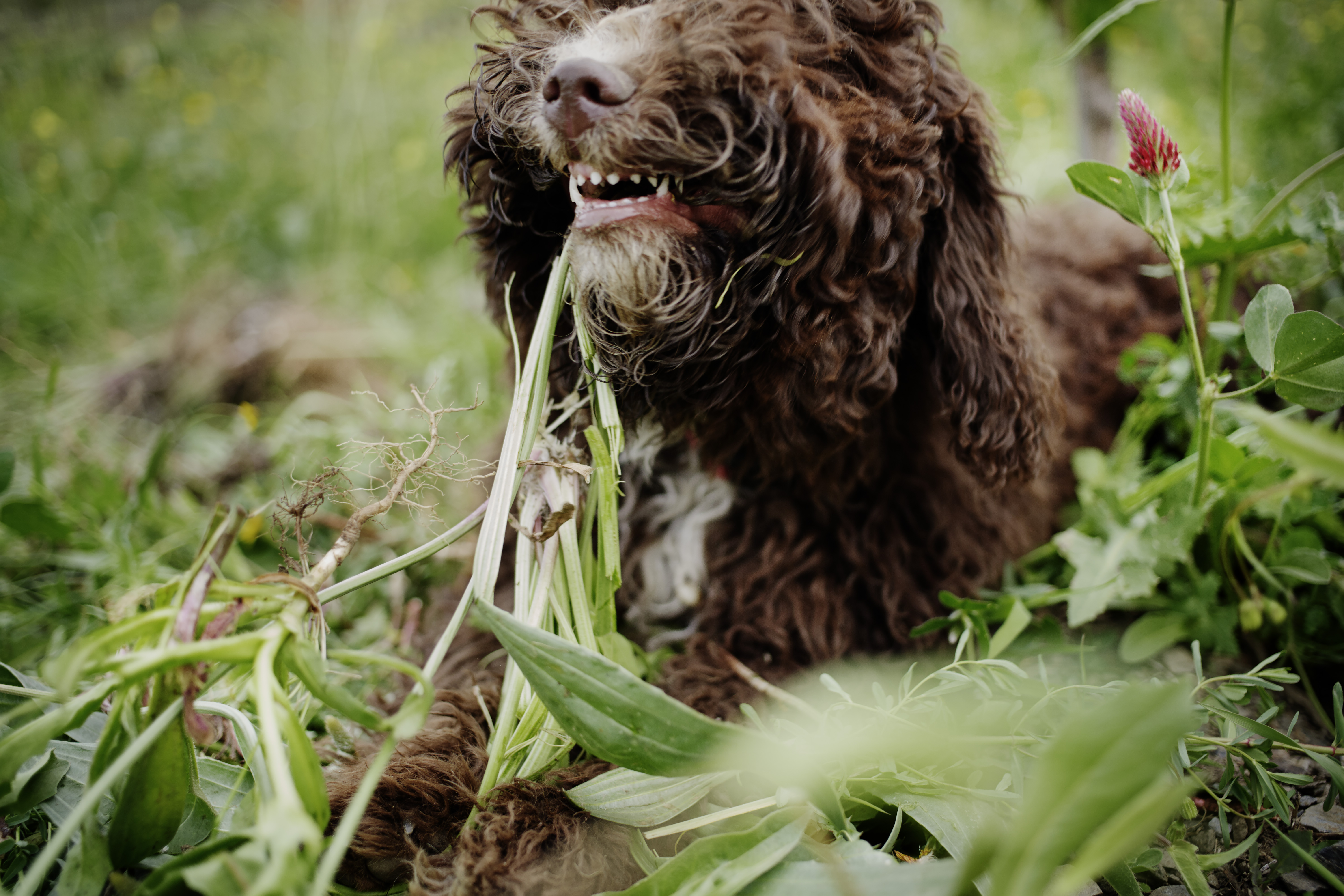 Wir dürfen vorstellen, das neuste und jüngste Teammitglied im Rebberg: Marfa. Die vier Monate alte spanische Wasserhündin ist in ihrer alten Heimat angekommen, macht ihre ersten Schritte auf Ses Closes und jätet bereits eifrig mit. Ganz besonders angetan haben es ihr die Wurzeln des Spitzwegerichs von denen sie kaum genug kriegen kann und vor dem Genuss sorgfältig allen Dreck von den Pflanzen abschüttelt.
