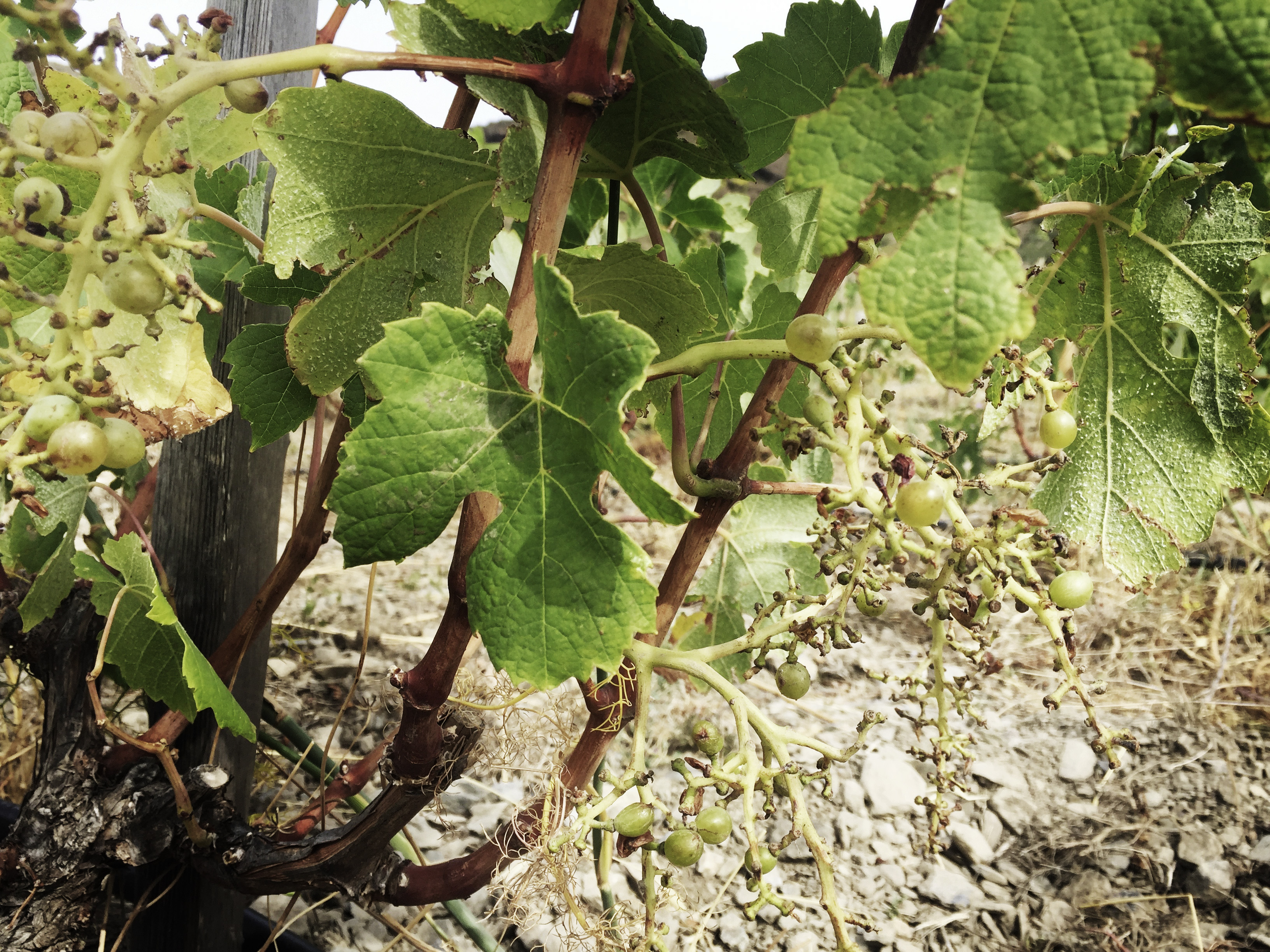 Was für eine Ankunft… Wo sind die Trauben? Da hilft alles suchen nichts, und schnell bestätigt sich, dass da jemand schneller war als wir. Der Zaun ist grob beschädigt, auch die vielen Steine die ihn beschwert haben, scheinen nichts genützt zu haben: Der Dachs hat uns in den letzten Wochen die gesamte Ernte weggefressen… Haare am Zaun und der mit Traubenkernen gespickte Kot verraten ihn. Der Sommer war dermassen trocken, dass die Tiere alle Anstrengungen unternommen haben, um irgendwie an die Früchte zu kommen. Enttäuscht flicken wir behelfsmässig den Zaun, verrichten ein paar kleinere Arbeiten und fahren vorzeitig wieder nach Hause.