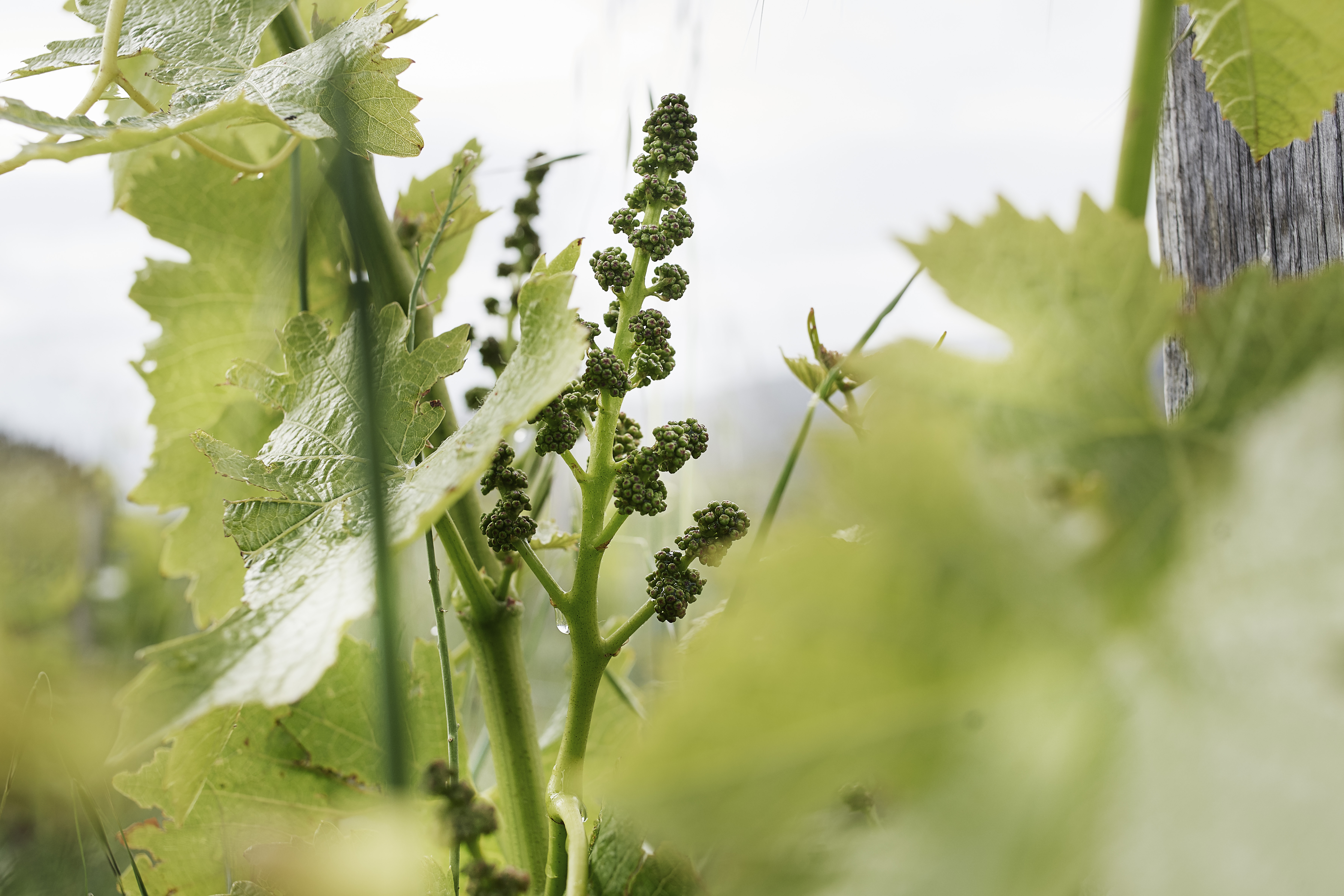Trotz komplizierten Einreisebestimmungen wollen wir das Erlesen nicht wie im vergangenen Jahr noch einmal verpassen und fahren für ein paar wenige Tage nach Katalonien, um bei den Reben die überzähligen jungen Triebe herauszubrechen. Die Frühlings-Regentage machen sich sichtbar, der ganze Berg blüht, gelb der Ginster, blau der wilde Lavendel und dazwischen ganz in Weiss die Baumheide. Die Reben sind gut angewachsen, auch bei den frisch gepflanzten Stöcken spriessen die ersten zarten grünen Triebe. Bei den älteren Pflanzen sind bereits die Gescheine zu sehen, aus denen sich die Weintrauben bilden werden. Nun hoffen wir auf eine gute Blüte und damit eine reiche Ernte.