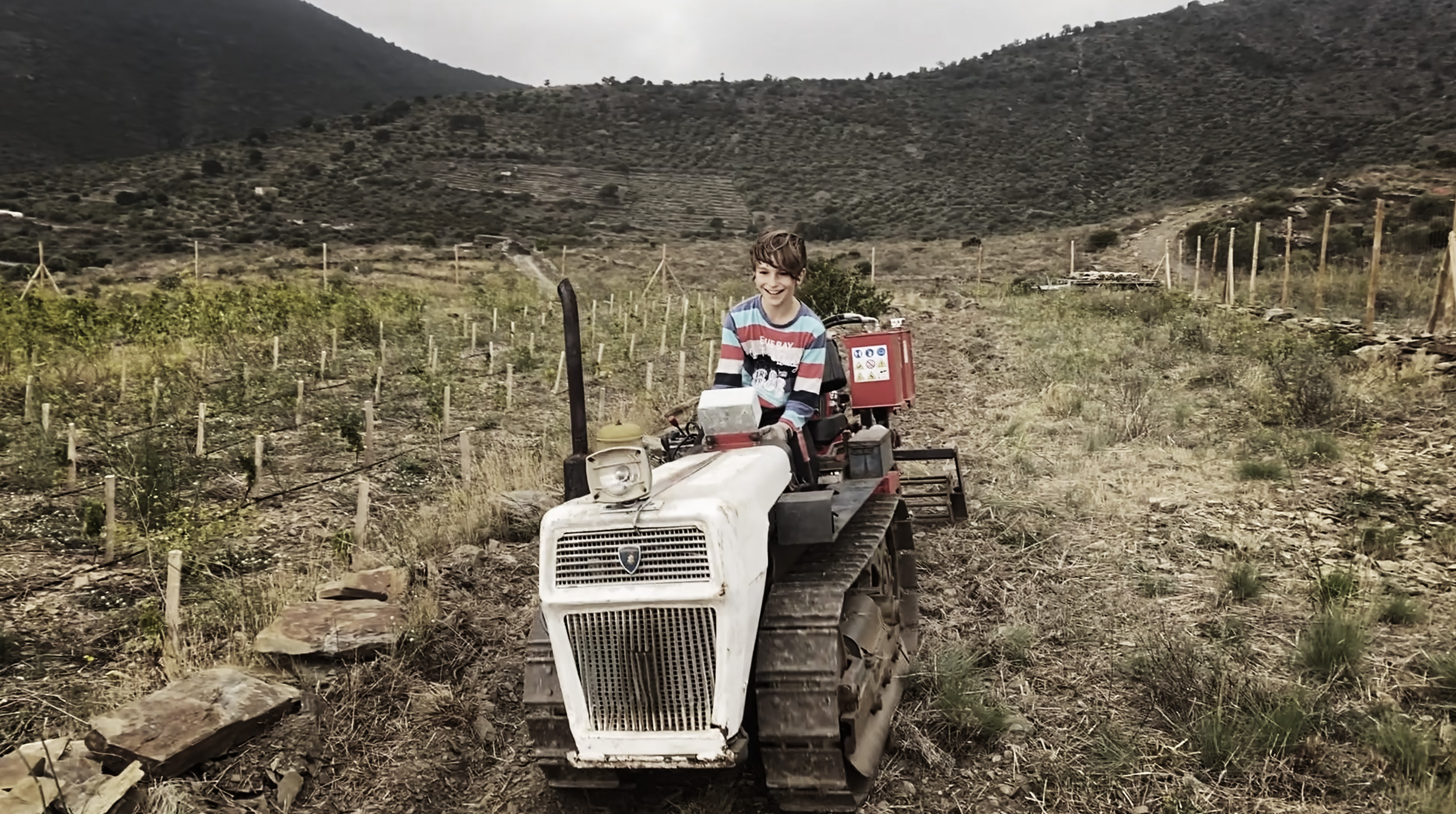 Nun graben wir auch noch die oberste Terrasse um. Also Leo gräbt die oberste Terrasse um. Leo und der Lamborghini, das scheint zu passen, für Nachwuchs ist gesorgt… Hier pflanzen wir keine Reben. Zum Jahreswechsel werden wir einige Zypressen, Pinien und auch vom Johannisbrotbaum ein paar Exemplare pflanzen. Allen diesen Bäumen macht der starke Tramuntana nichts aus, sie werden die darunter gelegenen Reben vor diesem tobenden Nordwind etwas schützen.