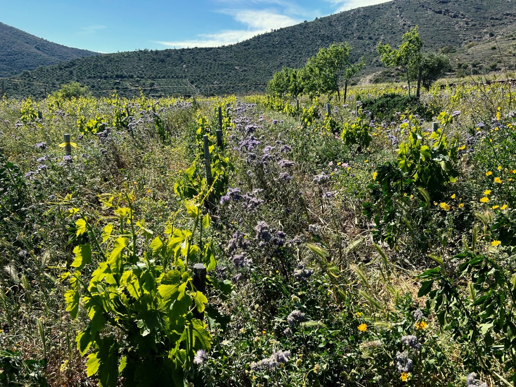 Endlich Wasser. Der erste Winter seit 4 Jahren mit genügend Niederschlägen, und der Berg leuchtet in sattem Grün. Auch die Reben scheinen sich vorsichtig zu erholen, die Begrünung wächst das erste Mal seit langem wieder dicht und blüht prächtig. Auf einen Schlag sind auch die Insekten wieder zurück, die unheimliche Stille die sich in den letzten Jahren über den Weinberg gelegt hat ist vorbei.