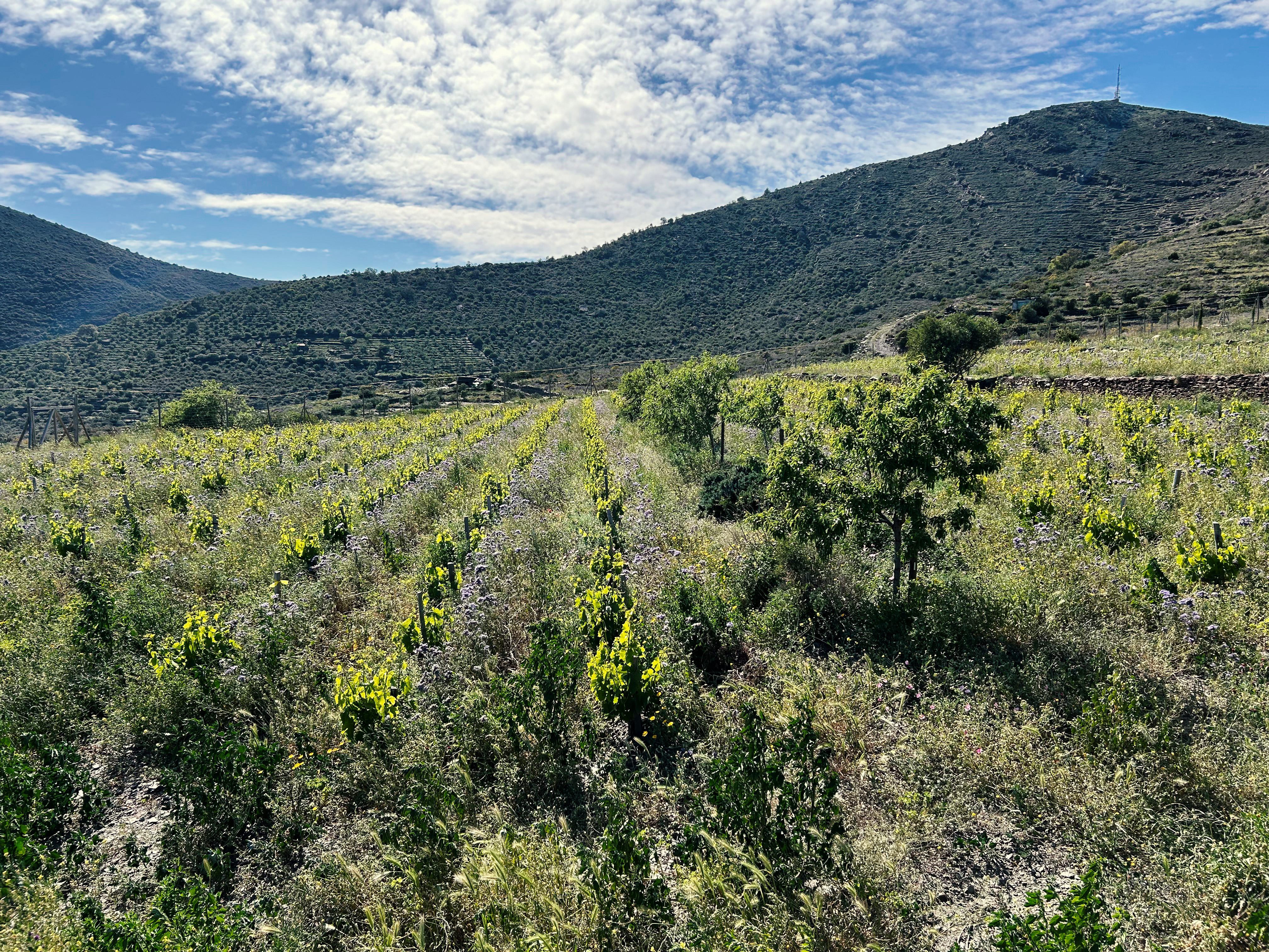 Endlich Wasser. Der erste Winter seit 4 Jahren mit genügend Niederschlägen, und der Berg leuchtet in sattem Grün. Auch die Reben scheinen sich vorsichtig zu erholen, die Begrünung wächst das erste Mal seit langem wieder dicht und blüht prächtig. Auf einen Schlag sind auch die Insekten wieder zurück, die unheimliche Stille die sich in den letzten Jahren über den Weinberg gelegt hat ist vorbei.
